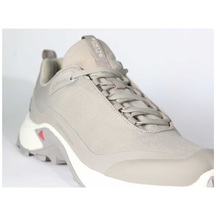 ویژگی بارزی که این کفش را از دیگر مدل های موجود در بازار متمایز می کند، water proof بودن آن هست همان طور که در تصویر هم ملاحظه می کنید کلمه water proof بر روی کفش نیز درج شده است.